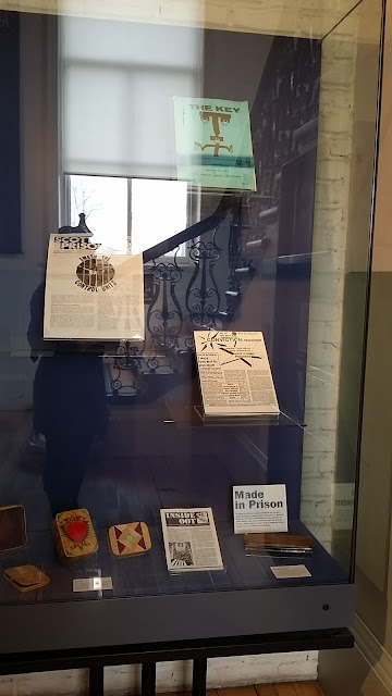 Glasgow Museums has a collection of approximately 500 objects related to crime and punishment in Glasgow which date from the 16th century to 1996. This collection includes keys, objects made by prisoners, clothing and uniforms, textiles, models, badges, booklets, branks and batons/truncheons. It also contains letters, postcards, leaflets, reports, seals, clappers, snitchers and rattles, in addition to medals, buttons, lantern, locks, programmes, posters, tipstaff and handcuffs. Other items include a shield, whistle, rag doll, police saddle, prison bell, prison door, citation, certificate, magazine, gold watch and an alco meter. The collection also has paintings, drawings, etchings, prints, photographs and sculpture. All of the objects in the collection relate to either the control of crime or the means of punishing and rehabilitating offenders. This includes items relating to the development of police forces within Glasgow and surrounding burghs, such as Maryhill, Govan and Partick in the 19th century, as well as the development of Duke Street and Barlinnie Prisons. Objects made by prisoners includes those made by French prisoners of war in early 19th century, items created in Barlinnie Prison's Special Unit and illicitly made tins.