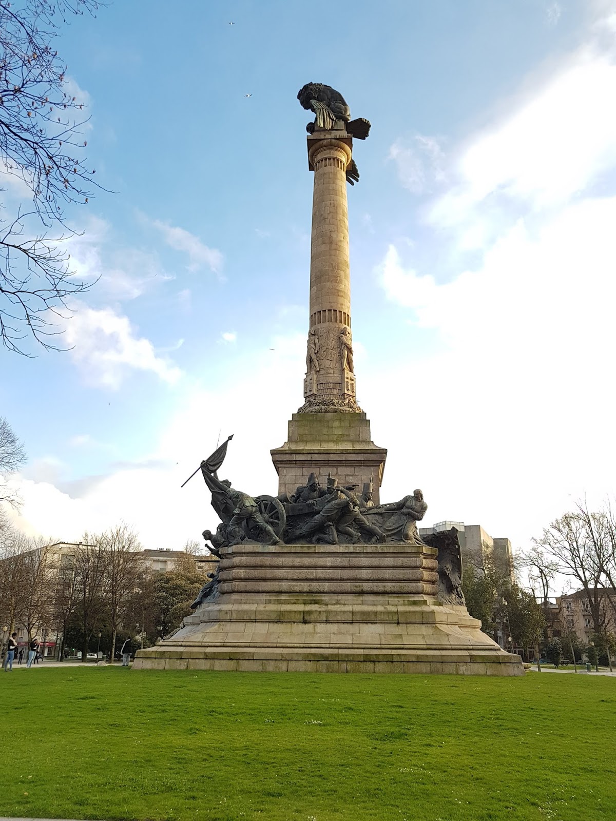 This memorial commemorates the heroes who were killed during the Peninsular War, which took place from 1808 to 1814 between the Spanish, Portuguese and British on the one hand and the French under command of Napoleon on the other side. It's set in the middle of a huge and busy round-a-bout in the district of Boavista. Despite being in the middle of a busy round-a-bout the monument is set in a peaceful tree-lined garden